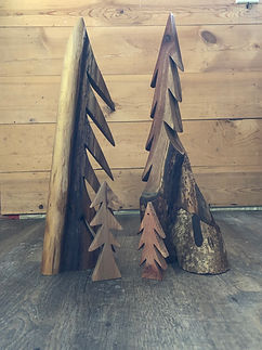 All trees are made from reclaimed wood, every tree is hand cut and there is no patterns for our trees. It is all freehand work.